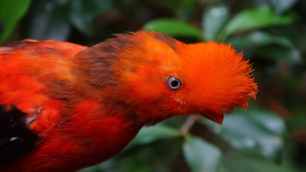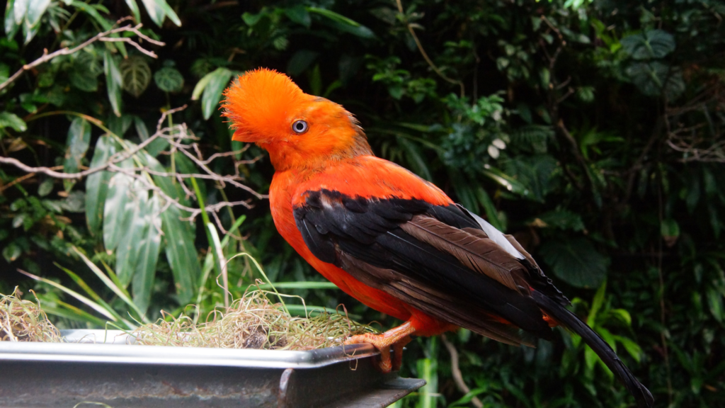 Otro protagonista es el gallito de las rocas, ave nacional del Perú, conocida por su intenso color rojo y sus particulares rituales de cortejo. También es común observar colibríes, que encuentran en las flores del bosque una fuente constante de alimento.