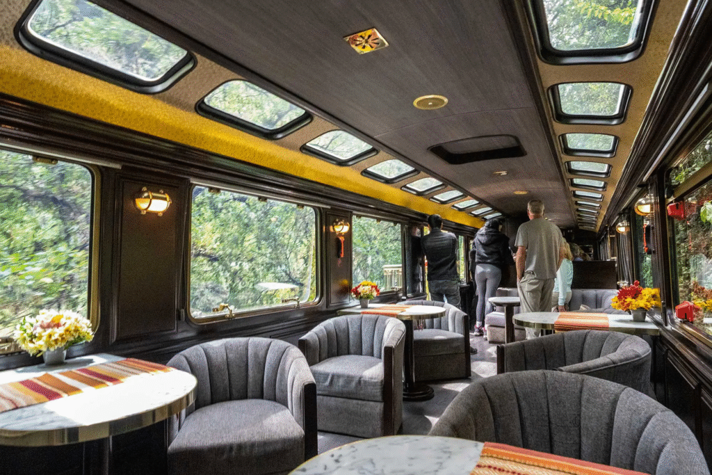 Es la versión premium del Vistadome. Además del vagón panorámico, cuenta con un coche observatorio con balcones y música en vivo durante el recorrido. Brinda una experiencia más completa sin llegar al lujo extremo del Hiram Bingham.